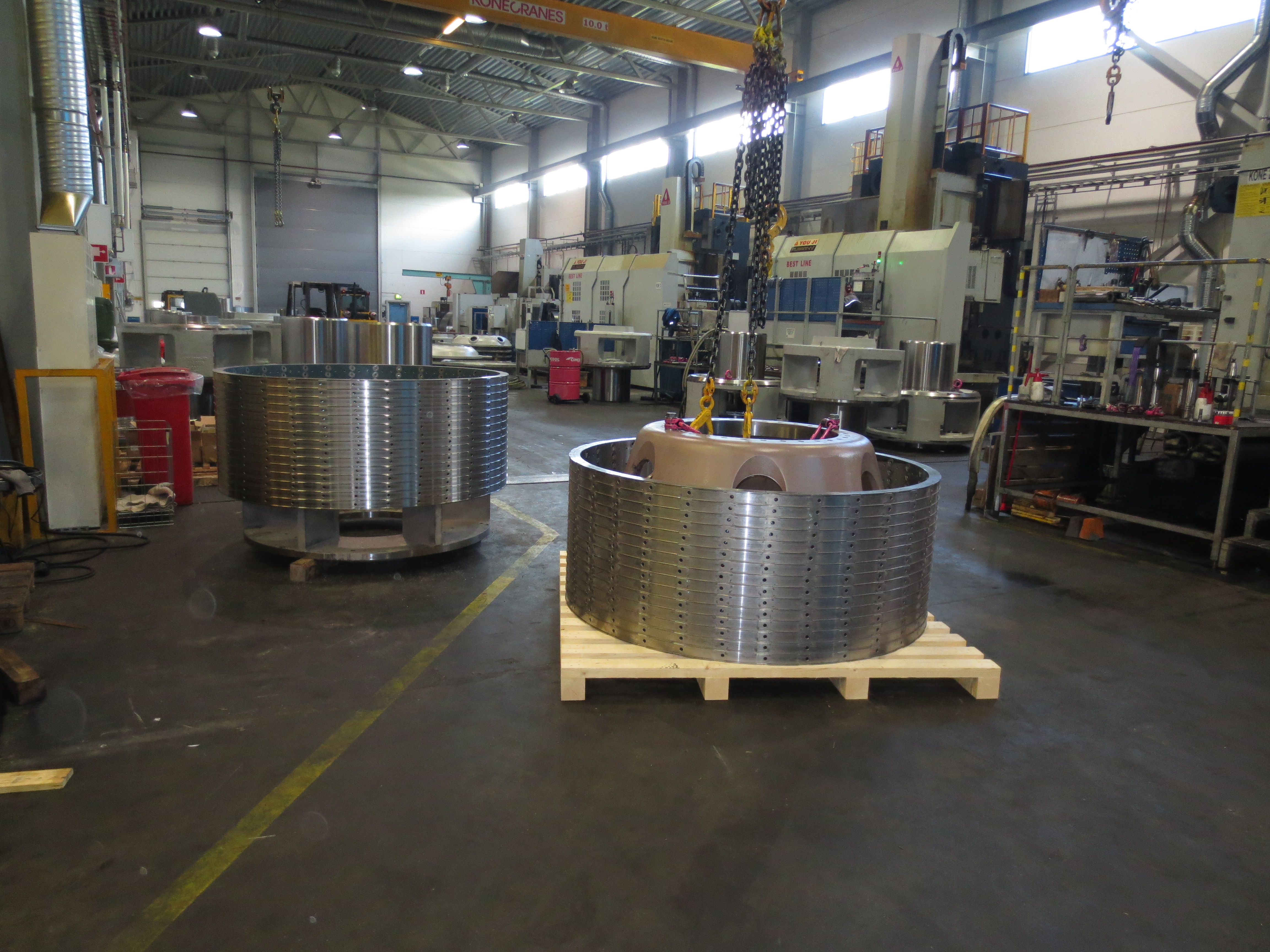Kestomagneettigeneraattorin staattoreiden, roottoreiden, akseleiden ja laakerikansien valmistus.